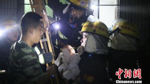 消防官兵怀抱婴儿,小心翼翼将其转移至安全地带 钟欣 摄