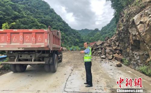 20日晚至21日凌晨,远安遭遇强降雨。当天早上5时,远安县公安局嫘祖派出所组织三路民警,分别沿着辖区公路展开安全巡查。当巡查至盐池村G347国道1128公里处时,民警发现路边山上的岩石、泥土已经滚落在公路上,堆积成小山,导致交通中断。